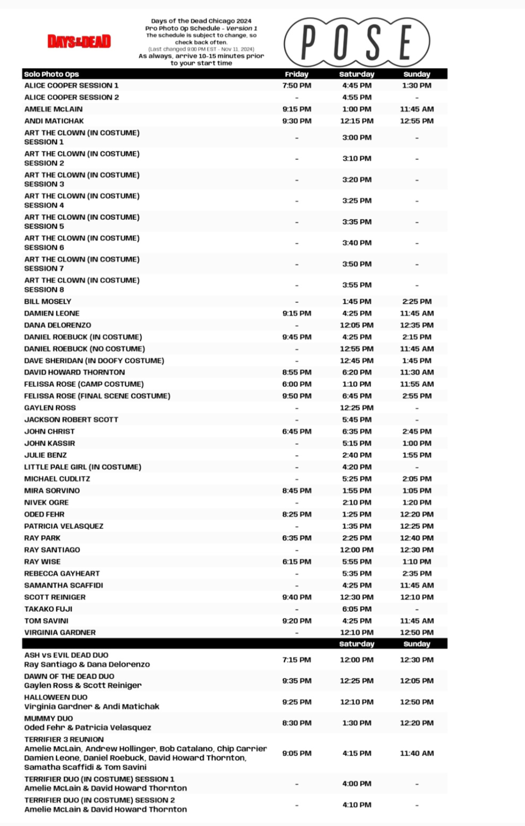 All guest appearances are confirmed but subject to possible cancellation due to professional obligations